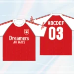鮮やかな赤が可愛く周りから注目されること間違いなしのサッカーTシャツといえばアーセナル風で決まりでしょ!!日本代表の冨安健洋選手も在籍しているイングランドの人気チーム!エンブレムの大砲の絵が特徴的です!!デザインは赤が基調となるのでとにかく派手で明るい印象を周りに与えることができますね!逆にTシャツ本体のカラーを白にして、腕や襟、デザインの文字のカラーを赤で合わせれば可愛い印象のアーセナル風デザインが出来上がります!