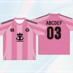 ピンク色のデザインがとてもかわいいサッカーTシャツ!実際にピンクをユニフォームに取り入れているサッカーチームもありますが、少ないのでレアで珍しいかわいいサッカーTシャツが作れちゃいます!ピンクと白のストライプはもちろんかわいい、全面をピンクにして袖や襟元を黒にしてもかっこかわいい!ピンク色のTシャツを着用すれば表情も明るく見え、楽しいイベントにピッタリ!SNS映えすること間違いなし!